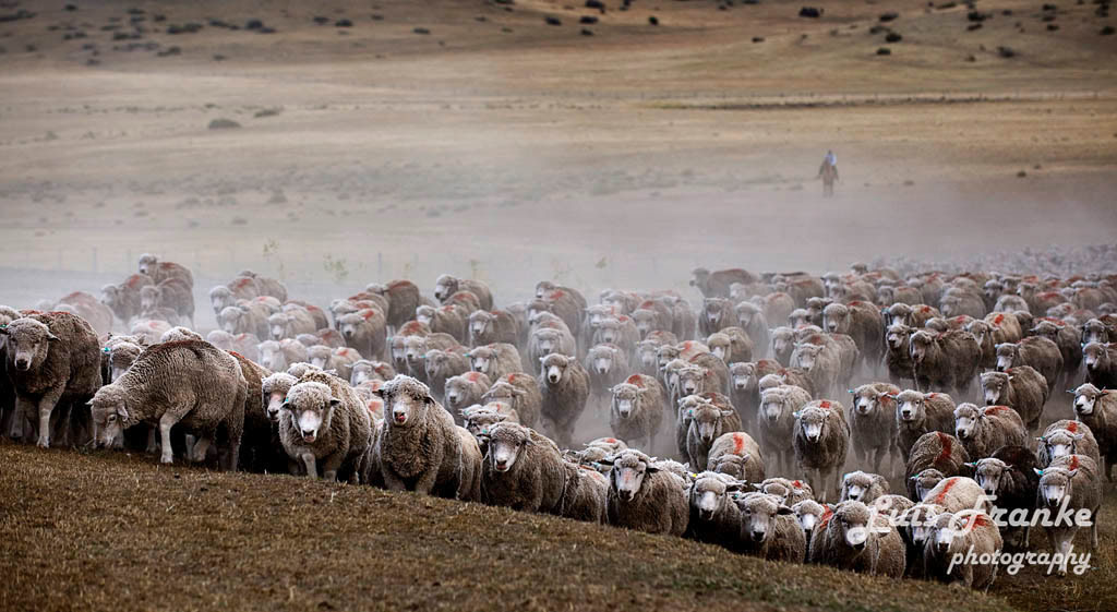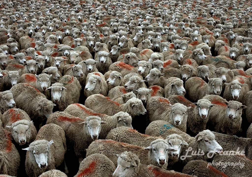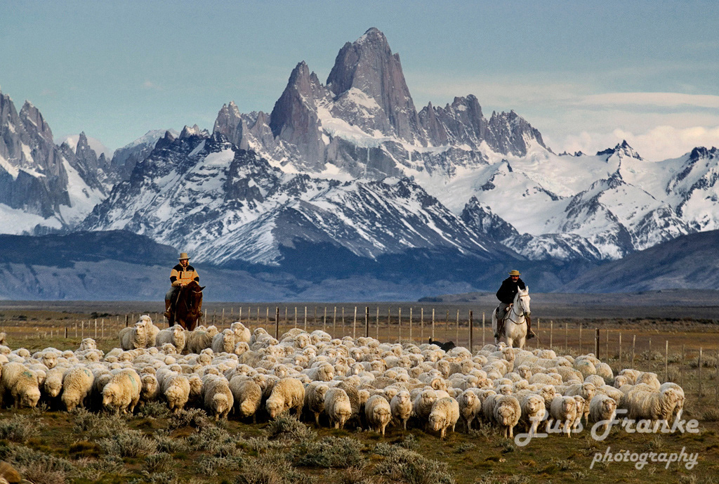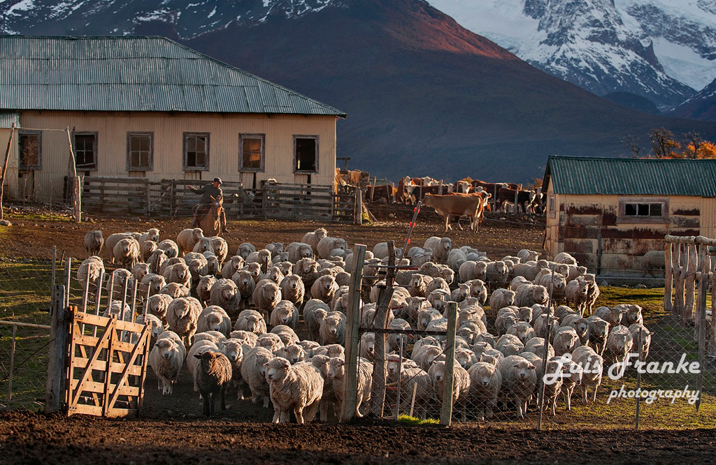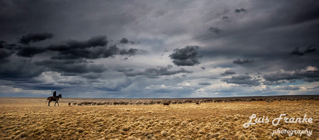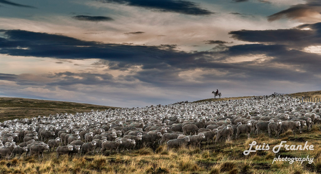 Los arreos de ovejas son parte de la vida del gaucho patagónico. Pueden ser muchas horas arriba de sus caballos arreando miles de ovejas ayudados por sus fieles perros.