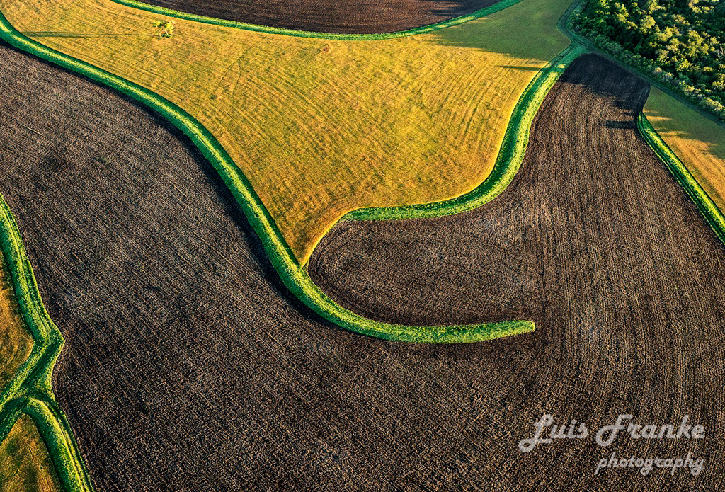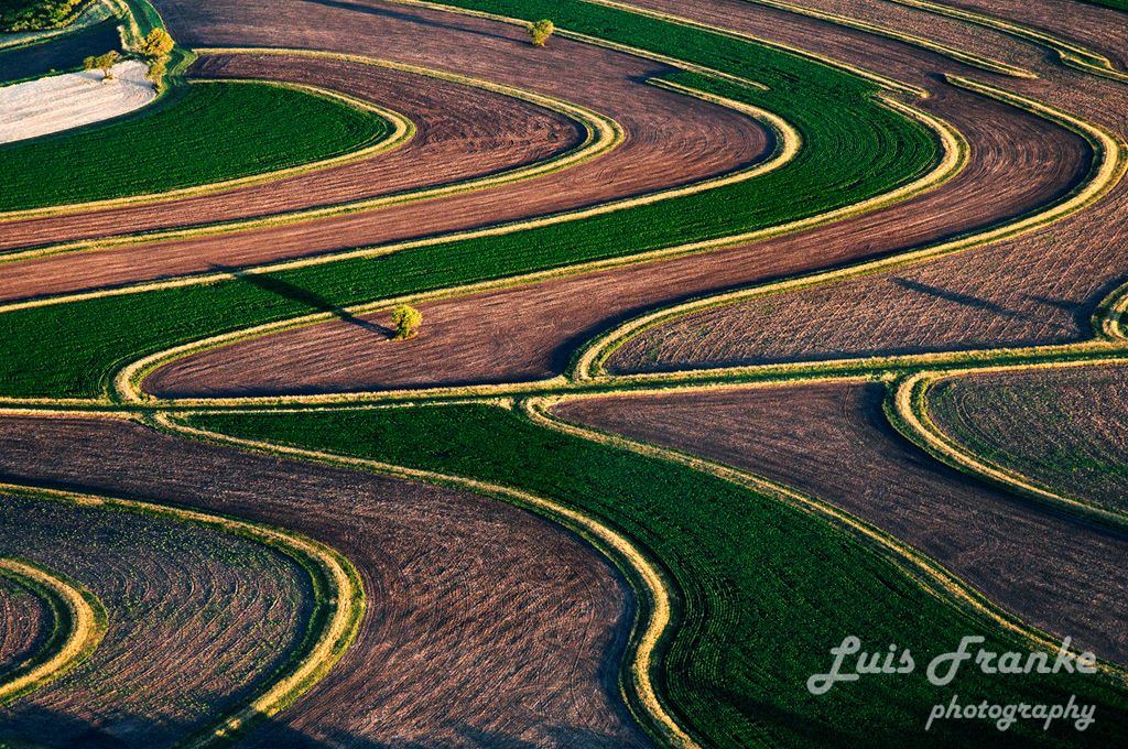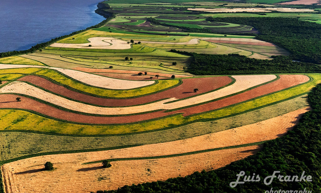 Laguna Blanca se trabaja bajo técnicas y practicas productivas únicas y novedosas, con el objetivo de que sea un campo multipropósito de producción de cultivos orgánicos, sin alterar los suelos, manteniendo un diseño territorial y teniendo a la estética coma un componente importante del proyecto. El terreno posee suaves pendientes, pero suficientes para que lluvias intensas erosionen el suelo. El mayor desafío fue frenar lo mas posible esta erosión hídrica, lo cual se cumplió al hacer "terrazas" para conducir el agua. Las formas no son caprichosas y siguen las curvas de nivel del terreno. La diversidad y rotación de los cultivos se desarrollan en "mosaicos" intercalados sabre esas terrazas, de esta manera se evita que plagas y enfermedades pasen de un lote a otro. La serie de fotografías refleja en modo sintético este trabajo.